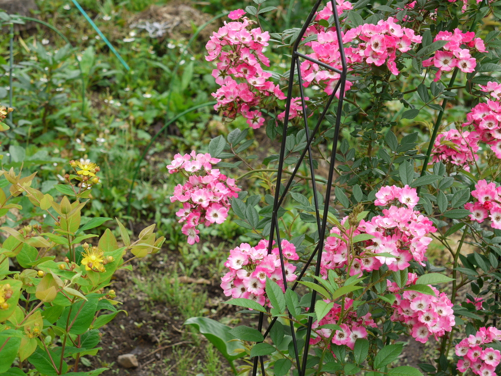 一重の房咲きの薔薇も良いですよね。オベリスクも良い感じですよ。