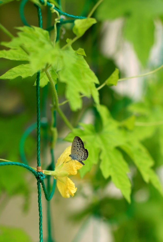 今年はチョウチョが多いみたいですね。ゴーヤの蜜は甘いのでしょうか?イメージは苦そう。