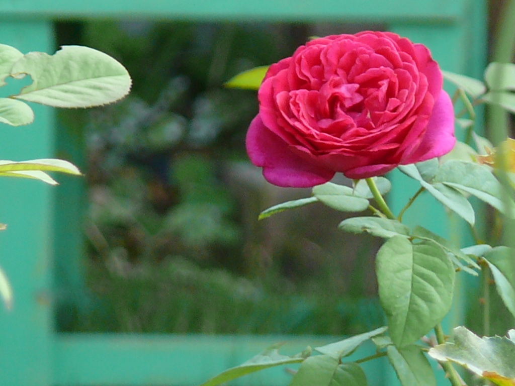 後ろのミントグリーンがとても良い感じになっていて薔薇が一段と引き立っていますね~