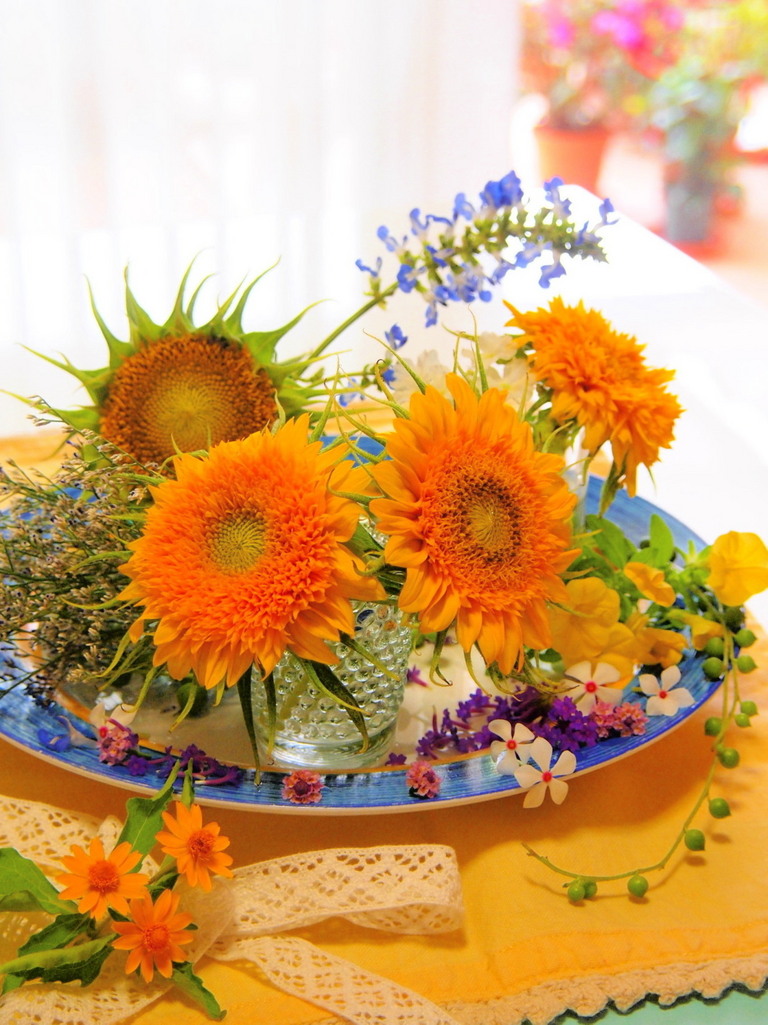 素敵!!ひまわり達も綺麗に咲いて・・・お皿に散りばめられた小花がまた素敵!we