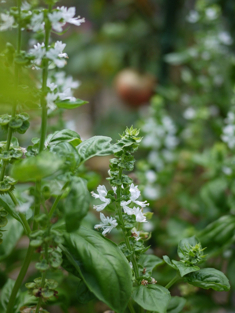 バジルの花のアップは初めてみました。奥に見えるトマトが良い感じで、なんだかお腹が減ってきました(笑)