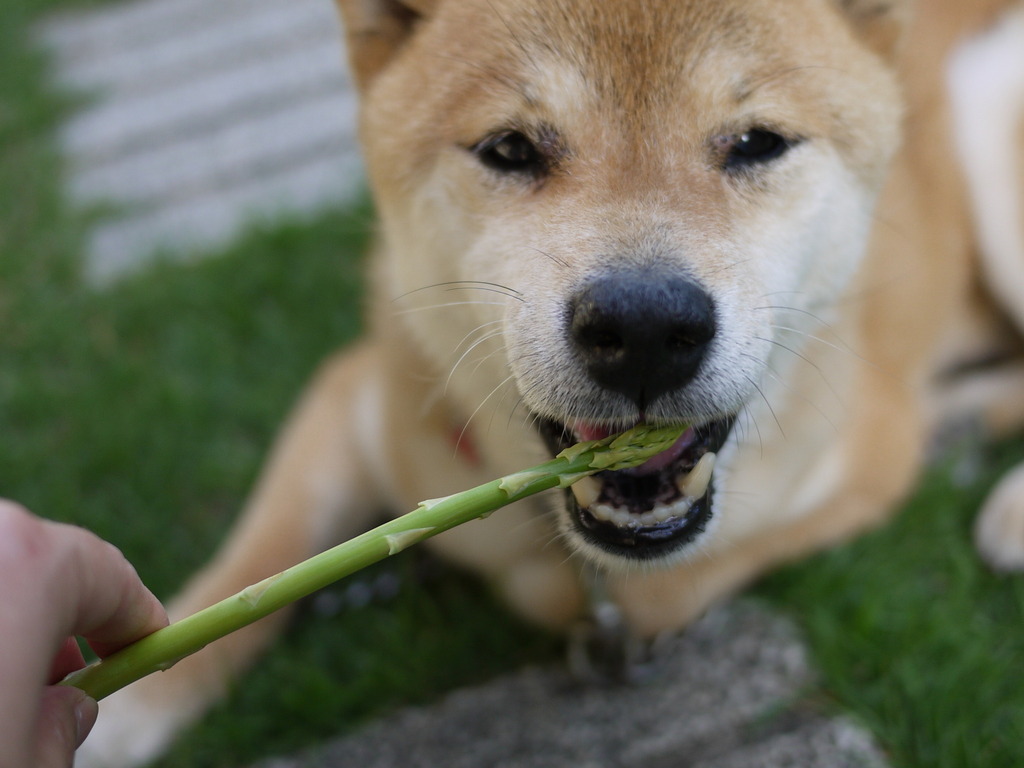アスパラだったら、犬にもOKでしょう。うちのは大根が好物です。