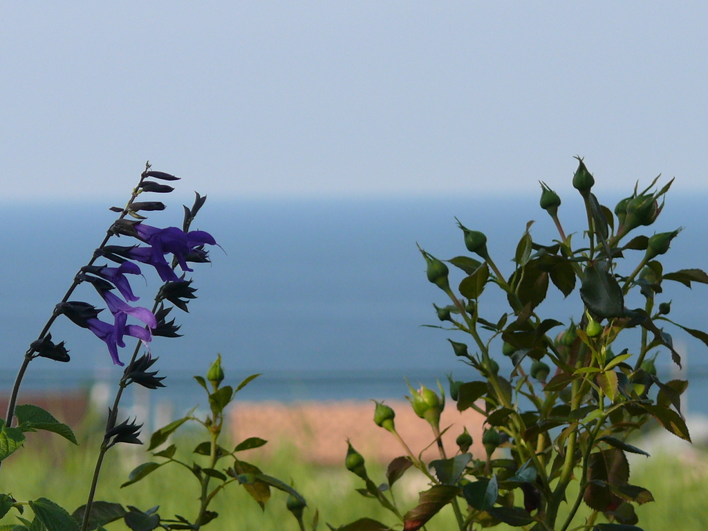 海をバックに、セージのブルーが浮き立っているようです。