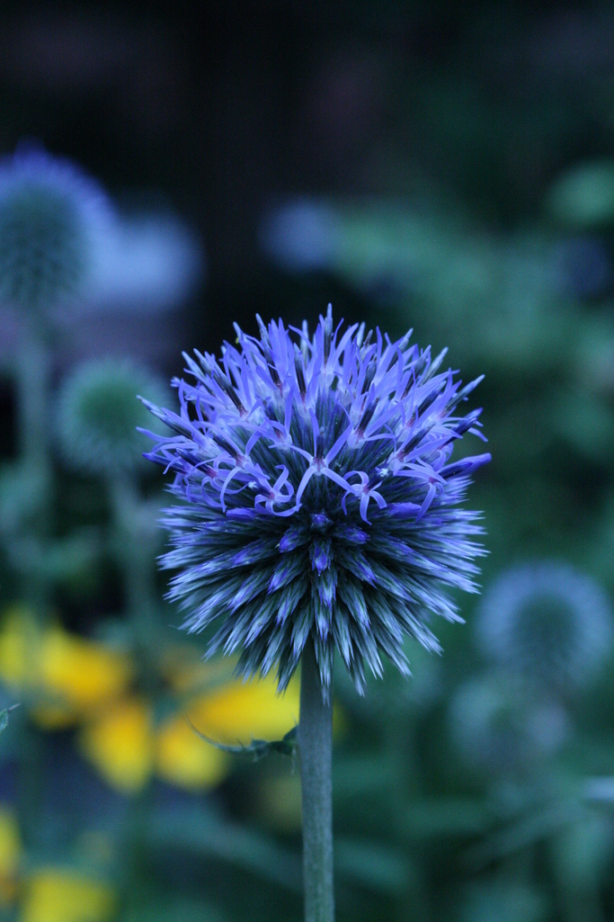 綺麗な瑠璃色ですね。まん丸で、上の方だけ花開いてつくりものみたいですね。