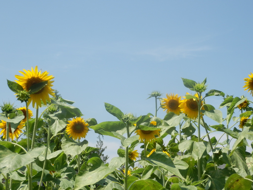 ひまわりは強くたくましく、被災地の瓦礫の中にも咲いていましたね。皆の思いが天まで届きますように。