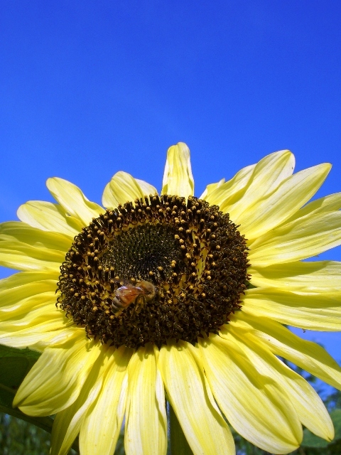 いいえ!真っ先に目に飛び込んできました(*^_^*)さわやかな青空・・ひまわり・・蜂・・大好きな一枚・・