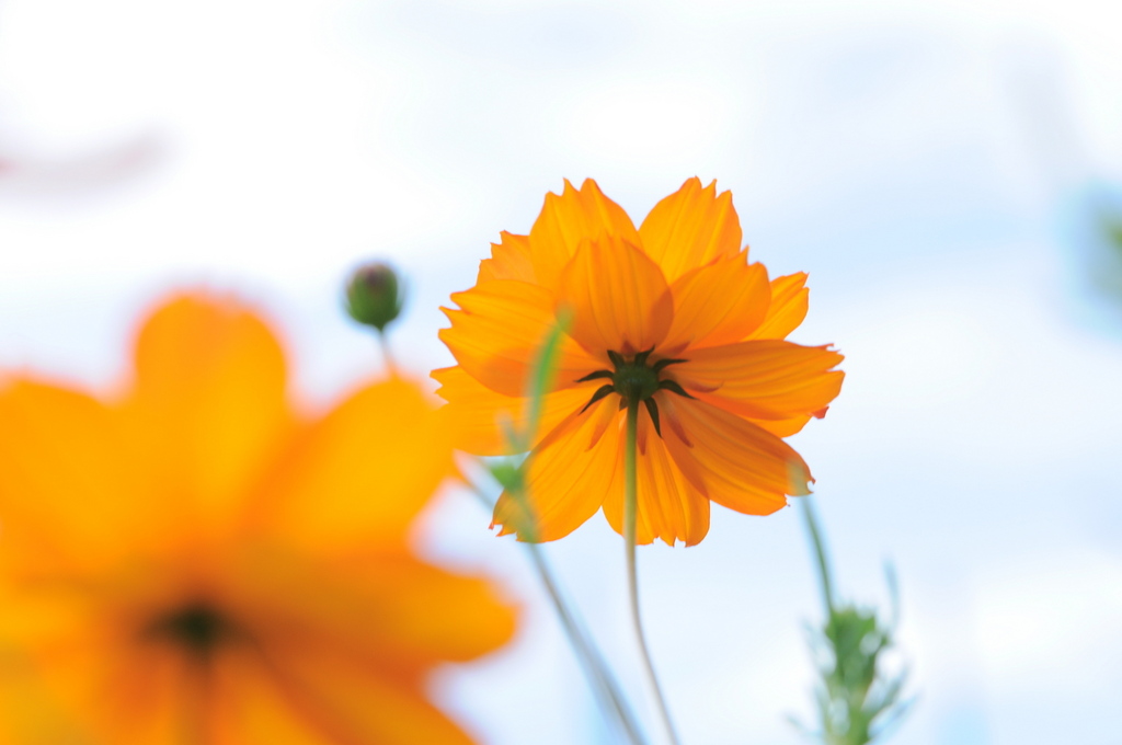 キバナコスモスってあまりにも目に付きすぎてあんまり好きではないんですが、こうやって裏側から空に向かってみるとなかなかのバックシャンですね。