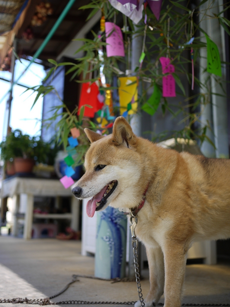 可愛い!!!賢そうなこの顔、いいわぁ・・・^^七夕飾りに軒下の吊るした玉ねぎ・・・ほんと、田舎を思い出しました・・・