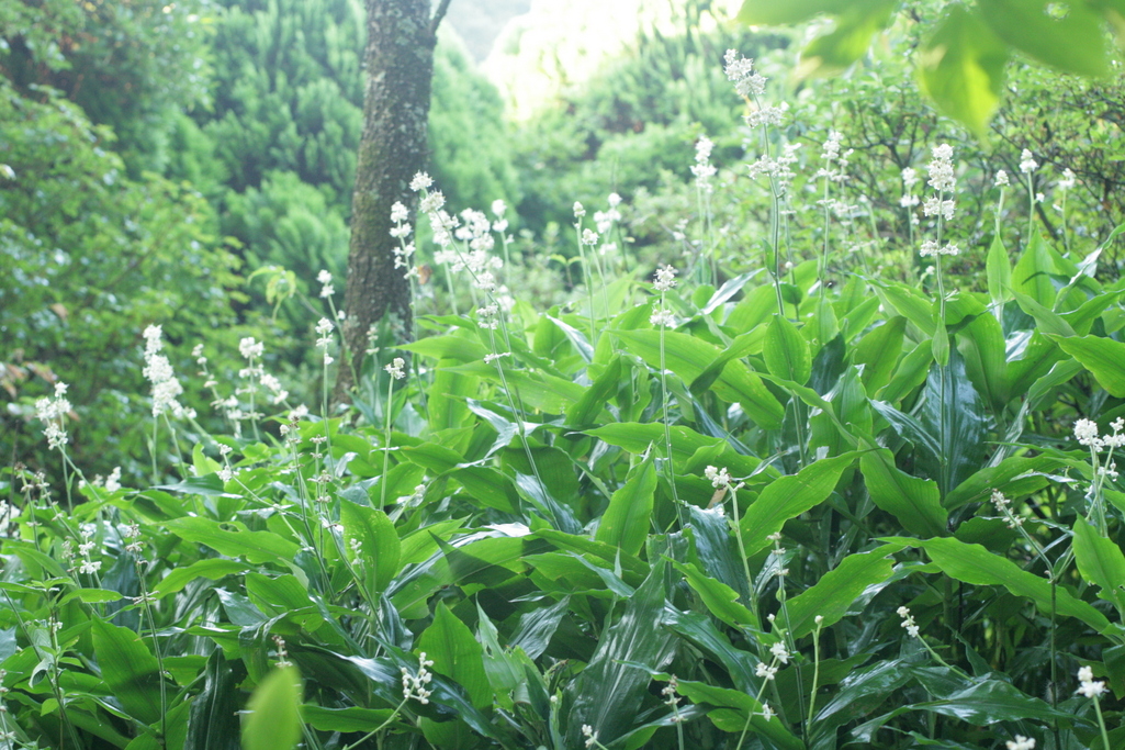 緑がいっぱいでステキですね。癒されます。白い小さなお花が集まって、可愛い♡