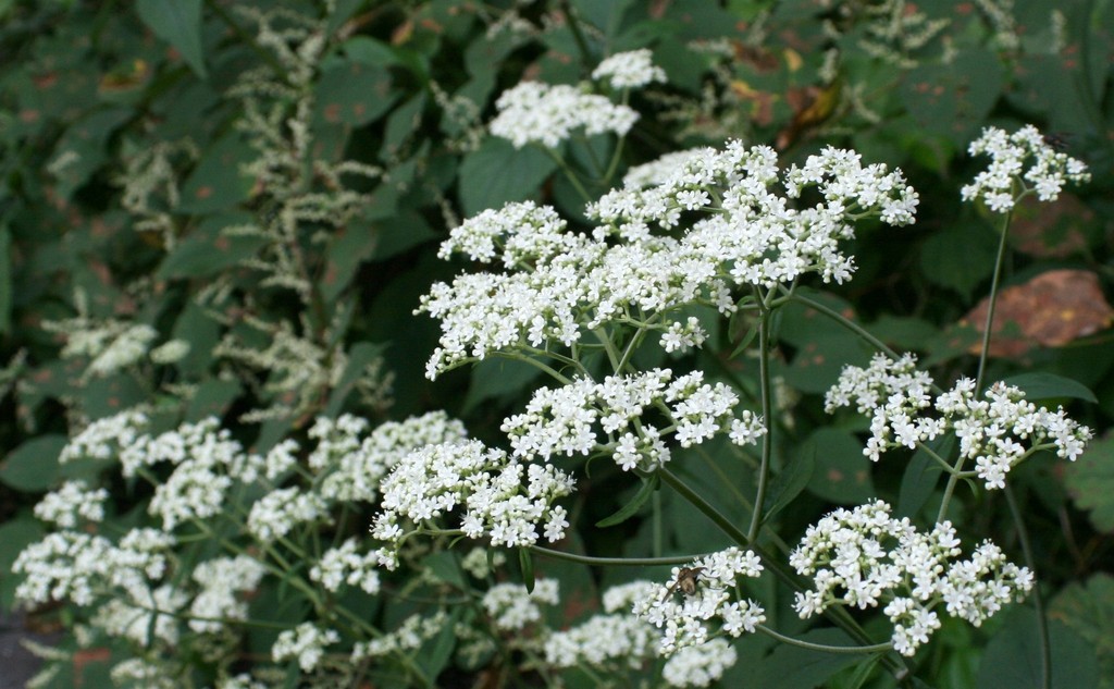 皆さんコメントありがとうございます。この花の名であるオトコエシ(男郎花)は、オミナエシ(女郎花)に対比する形でつけられたようですが、どちらも小花の集合体である点を除くとかなり違う花です。オミナエシはスゥーっと背が高く細身で繊細な感じですが、こちらはがっしりしたずん胴型といった感じです。