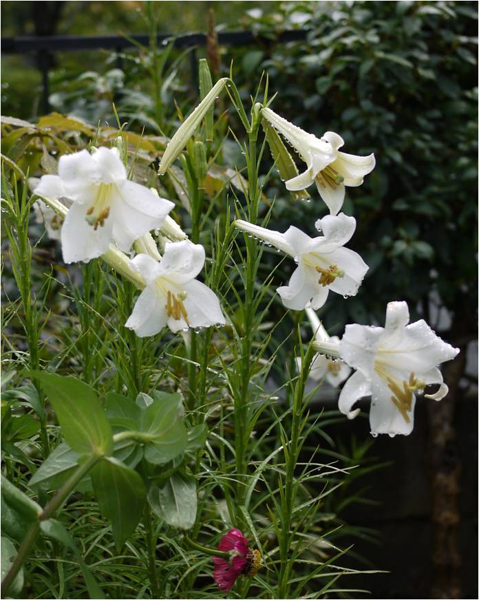 テッポウユリって地味だけど毎年同じところに咲いてくれて、庭の中でそれなりに存在感がありますね。