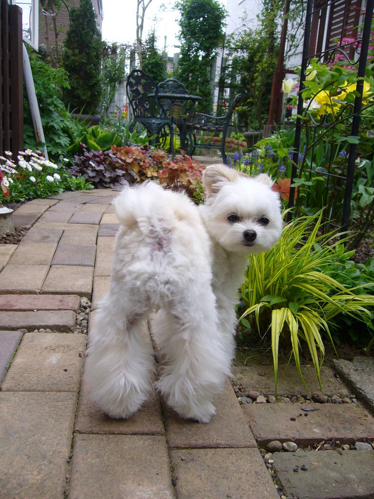 わんちゃんも可愛い♪ お庭も素敵^^ 写真の撮り方も素敵ですね^^♪ 春の写真ですか?
