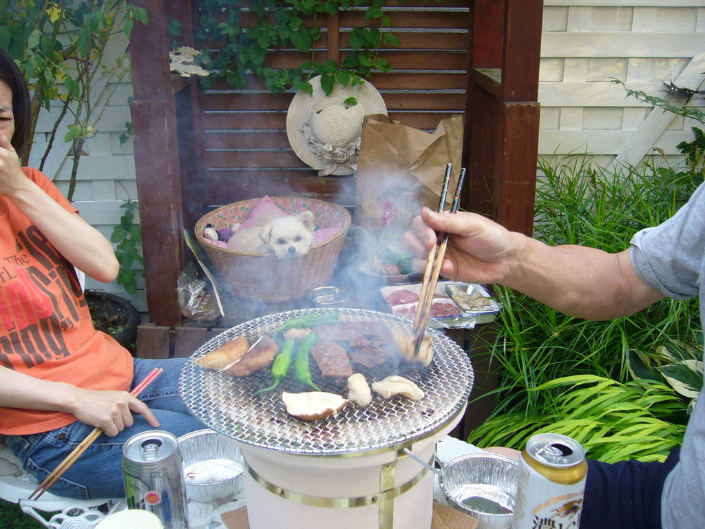 七輪で BBQ.オシャレとは・・・・ほど遠いですぅ。