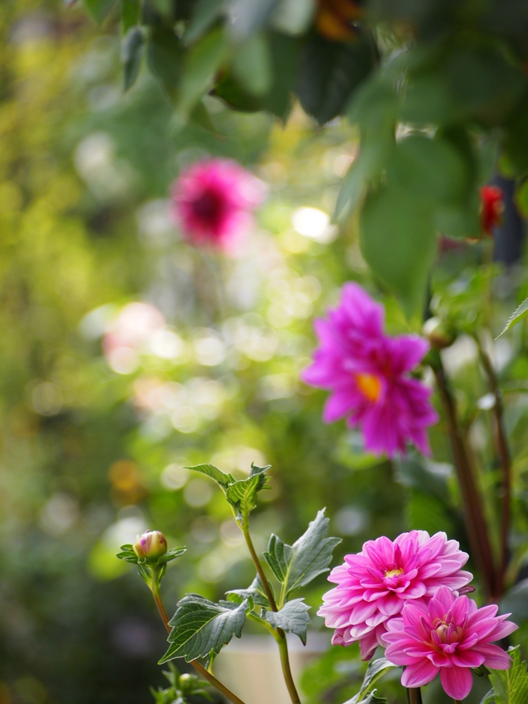 奥も手前も違う種類のダリアですね。この時期ダリアが有ると、お庭が華やぎますね。