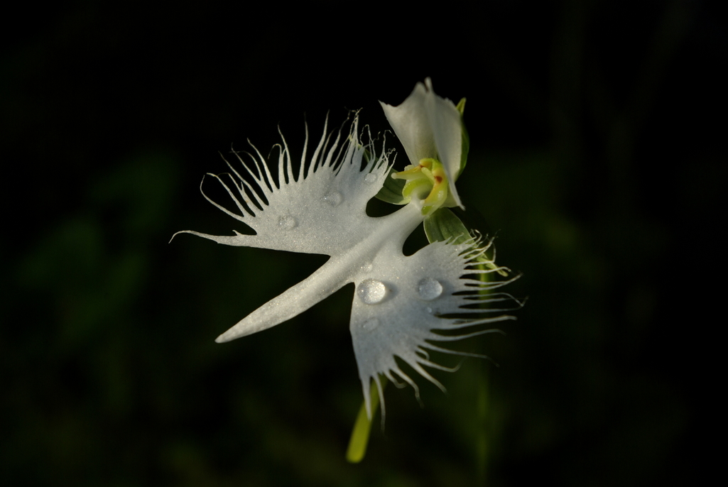 サギソウって本当に鳥が羽をひろげて飛んでいるようですね。白くて優しい花ですね。水滴もいいですね。