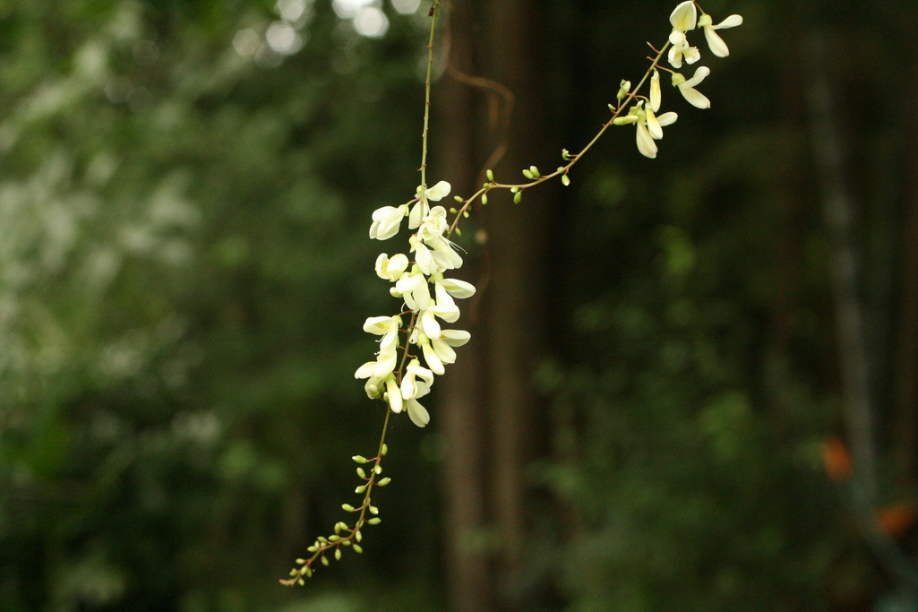 夏に藤の花なんて、初めてです。色もグリーンがかった白で綺麗ですね。
