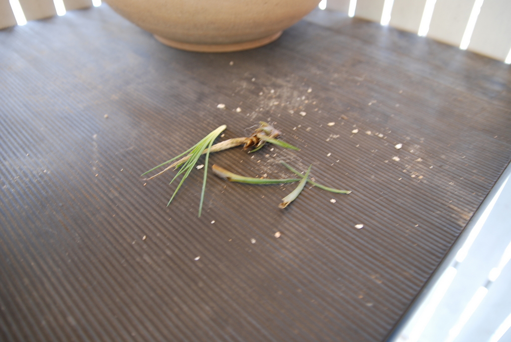 よく見るとテーブルの上下に苗の残骸が.....