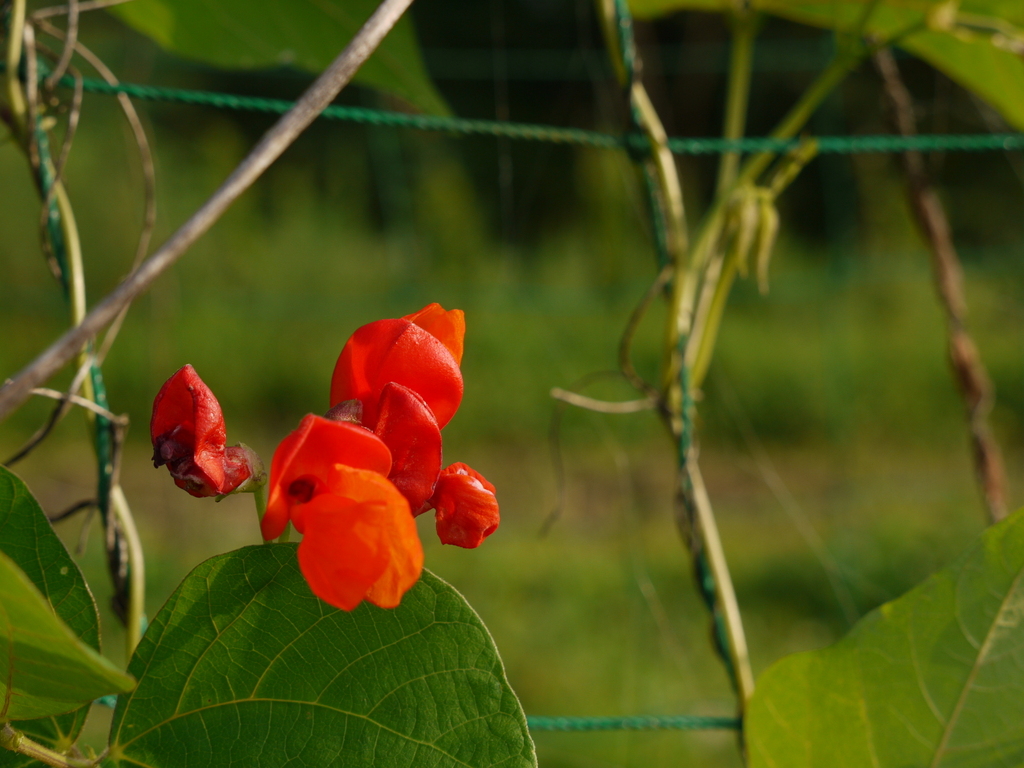 花豆の花はオレンジ色で目立ちますね。こちらでは花豆は名物でいろんな形で愛されている食物です。あちらこちらの畑でよくインゲンと隣りあわせで作っている光景が見られます。