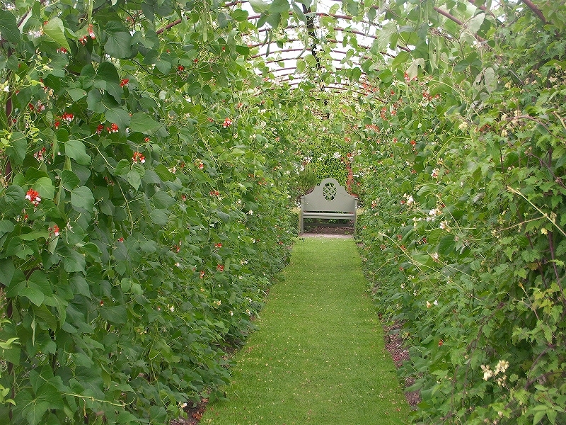 インゲン豆のトンネルだなんてすごいですね!奥に素敵なチェアーが見えるのがたまらないです!