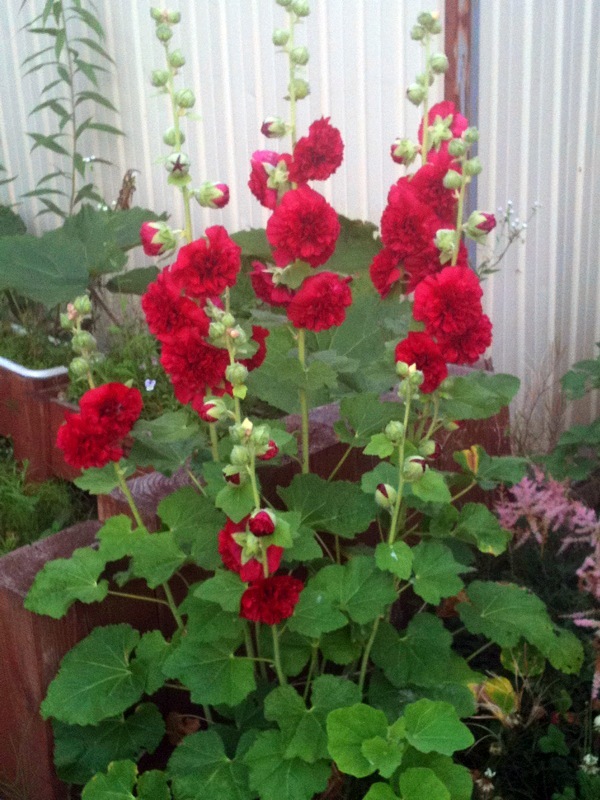 鮮烈な赤が印象的なホリホックですね。