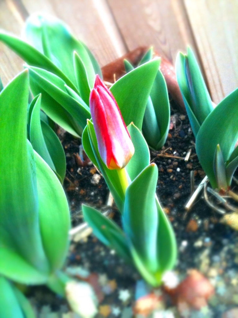 テラスで越冬チューリップ