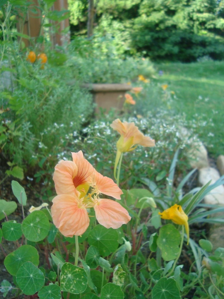 このナスタチュームの淡いオレンジは珍しいですね。