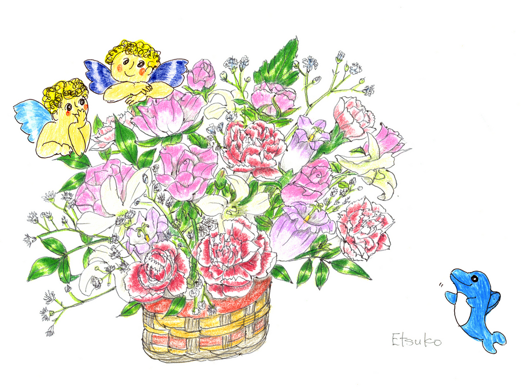 とっても可愛い♡ 花以外のイラストもお上手ですね~! 私の義母もバラはお誕生日とか特別な時だけです。しっとりした小花の方が書いてて楽しいみたい^^