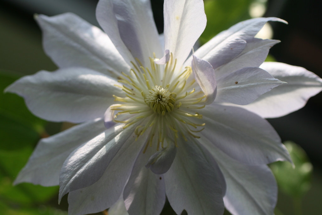 まっ白なクレマチス、綺麗な花びら・・・でもおっきなクレマチスが咲くとびっくりしますね。