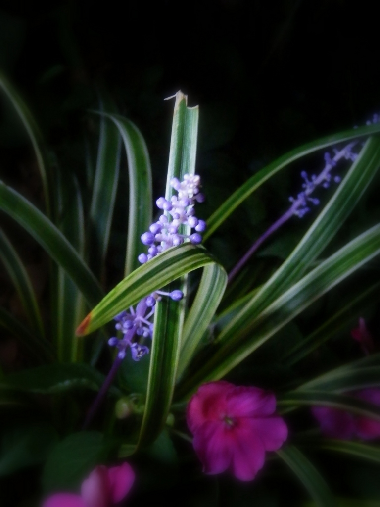 何気ない斑入りの藪蘭、スポットライトを浴びて今夜はスターです