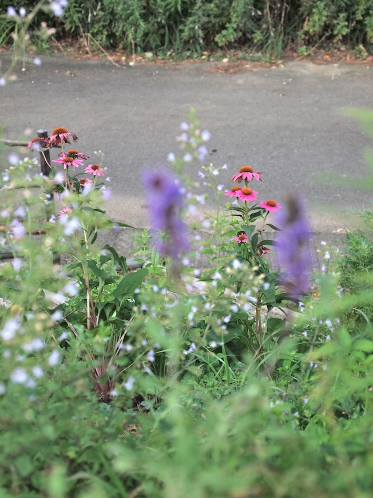 斜面になっている庭より。カラミンサやサルビアと。