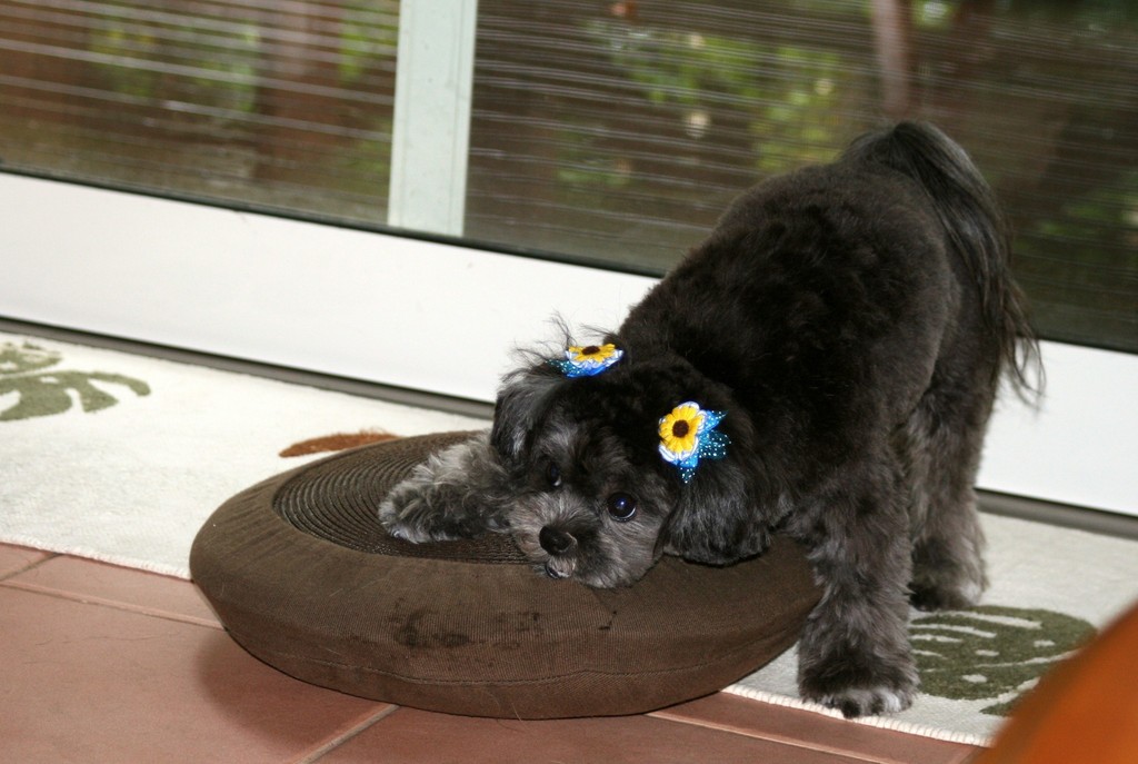 ありがとうございます。実はうちにはクーチャンのほかにキャバリアのカイト君とチョコラブのゴンちゃんがいますが、どちらも12月には6歳になるお兄さん達です。2匹はおちびちゃんのペースにはとてもついていけないようで一緒に遊ぶ対象とは見てくれません。だからいつもお父さんとお母さんのあとを追いかけています。