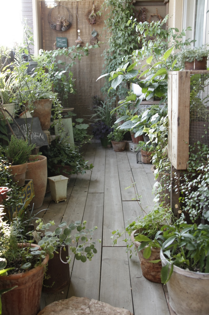 植物と他の物のバランスがよくとてもいい感じのベランダガーデンですね。置かれている物も吟味されている事が窺えます。