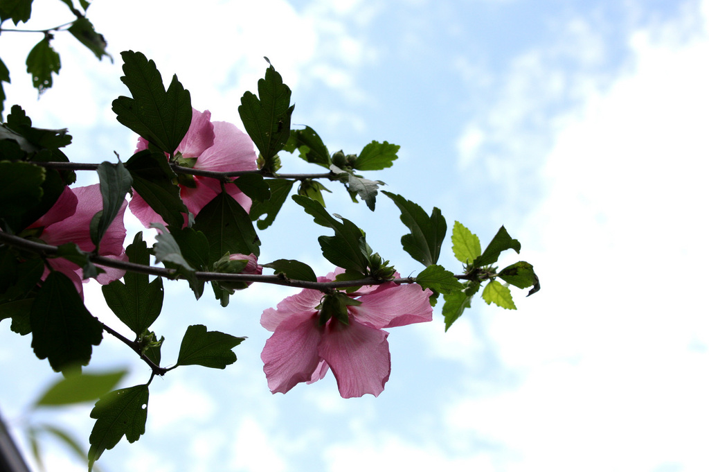 青空に、ムクゲが映えてとても素敵♡