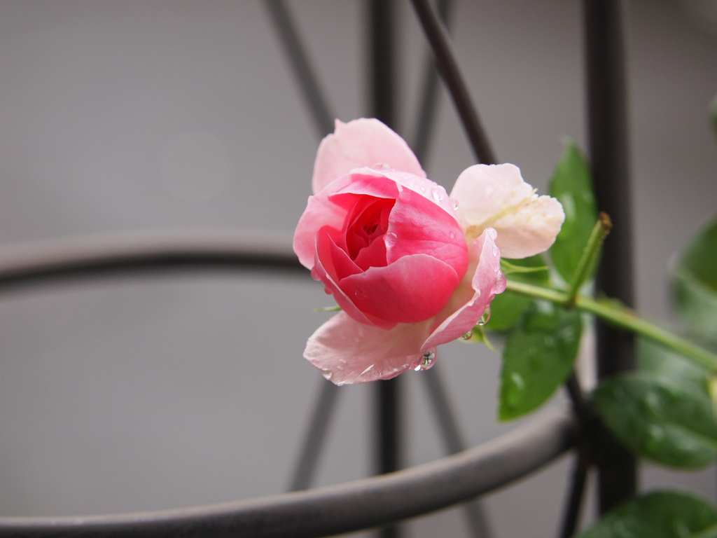 ポンポポネッラ・・つる薔薇です。先日剪定をしたんですが・・蕾が切れなくて・・一輪だけ咲いています・・