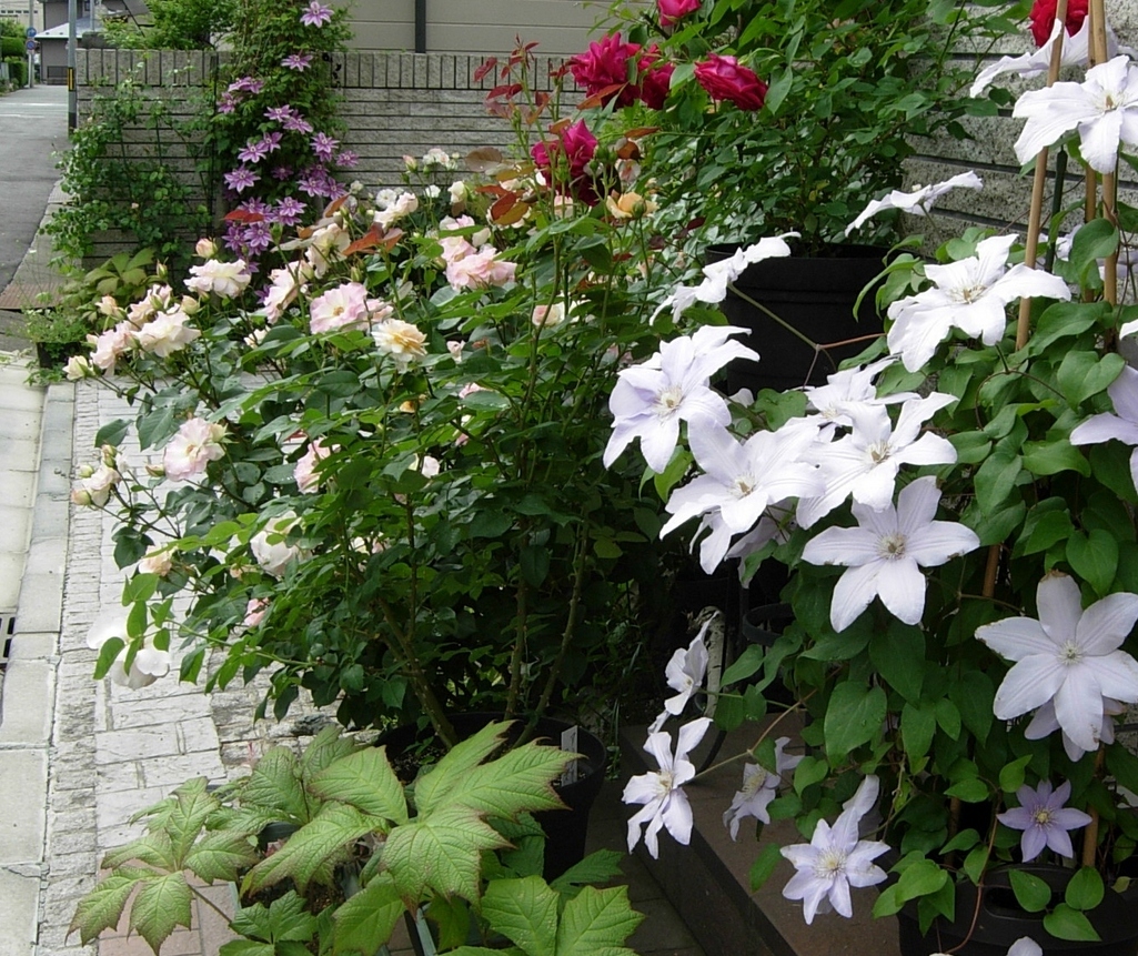 手前のクレマ、シルバームーン。お気に入りです。