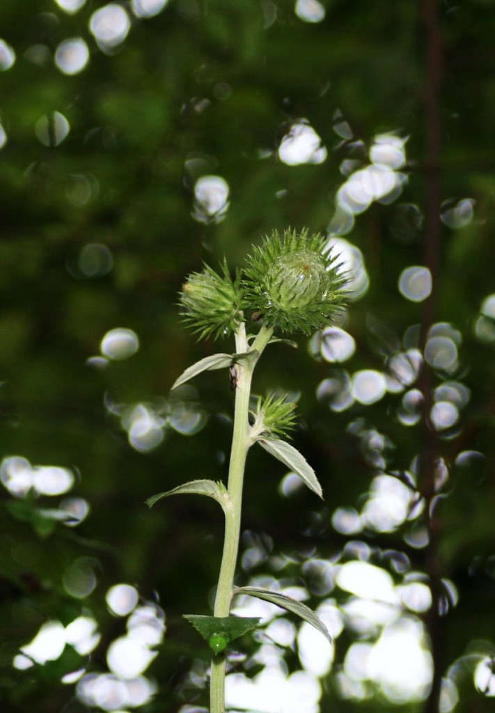 バックにキラキラしているのは木漏れ日なんですか?素敵なお写真ですね。これはアザミの仲間なんですね。どんな色の花が咲くのでしょう。楽しみです!