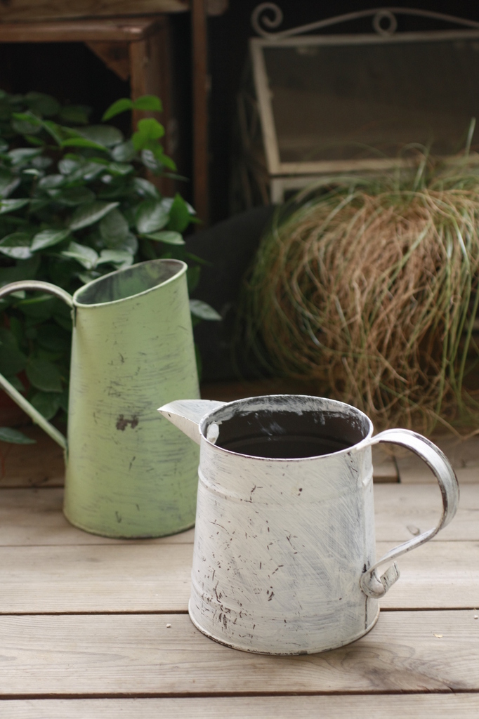 ベランダに馴染んでいますね(^-^)白い水さしの取ってのくるんが可愛い♡