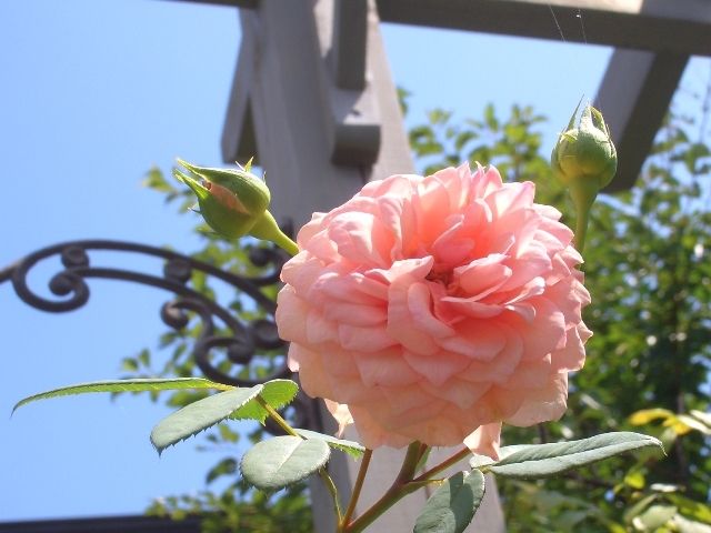 やっと青空が戻ってきたんですネ^^! 空に向かって、ホントお花がうれしそう♡ うなだれて咲くウィリアム・モーリスも光にむかって微笑んでいますね(*^^*) 素敵なお写真です。