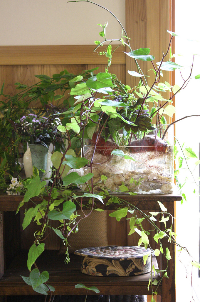 サツマイモのつるがアイビーのようですがもっときれいかも。