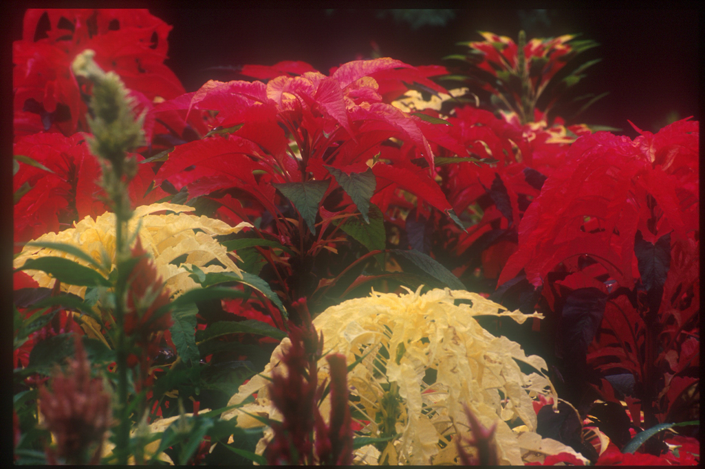 鮮やかですね。どうしても花ばかりに目が行きますが、こんな綺麗なアレンジもお庭に良いですね。(^_^;)