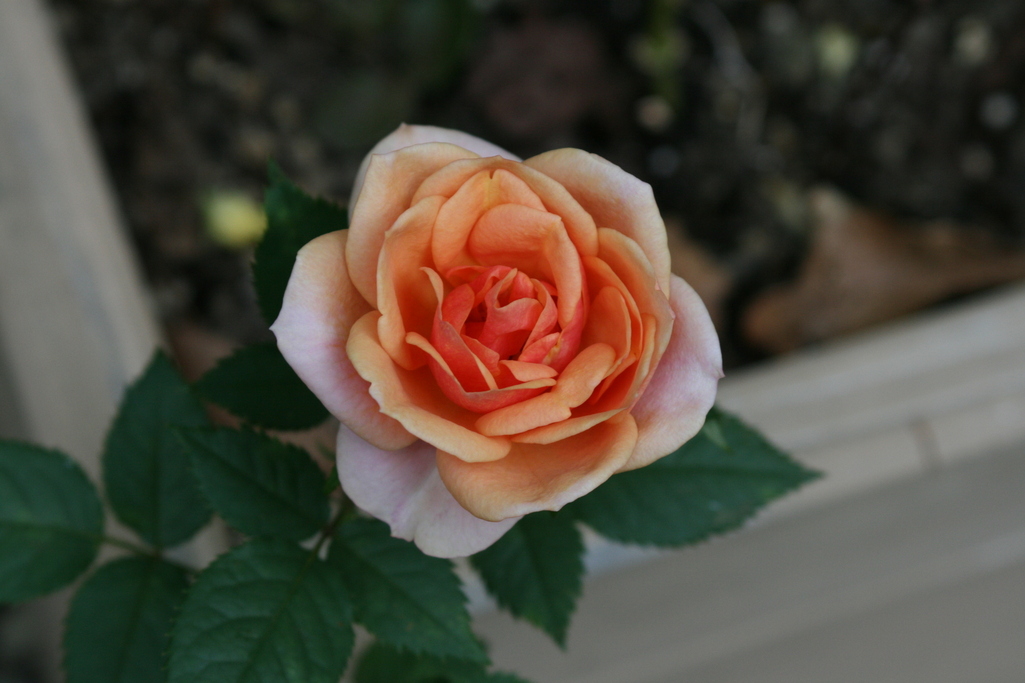 これは鉢植えのミニバラで本来室内で育てるバラですが、この時期は外に出していてもきれいに咲いてくれます。