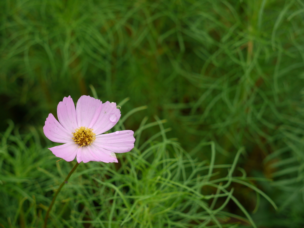 緑の画面に、コスモス一輪。美しさ倍増です。 早咲きの子って、めずらしくて可愛がってもらえるからお得ですね♡