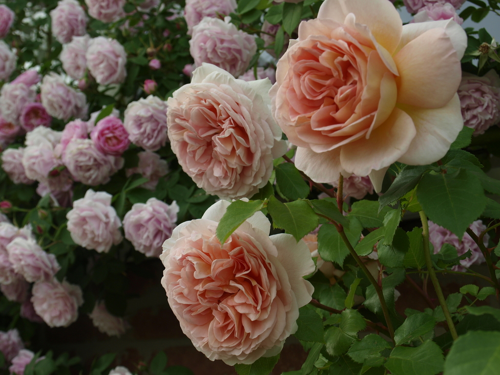 ありがとうございます!奥がブルボンクイーンで手前がアブラハムダービーです。今年の初夏は気温が高かったので、みんな柔らかい色の印象になりました。