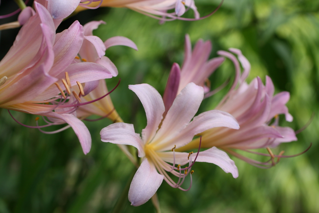 バックのグリーンに、リコリスの優雅な曲線が浮かび上がって