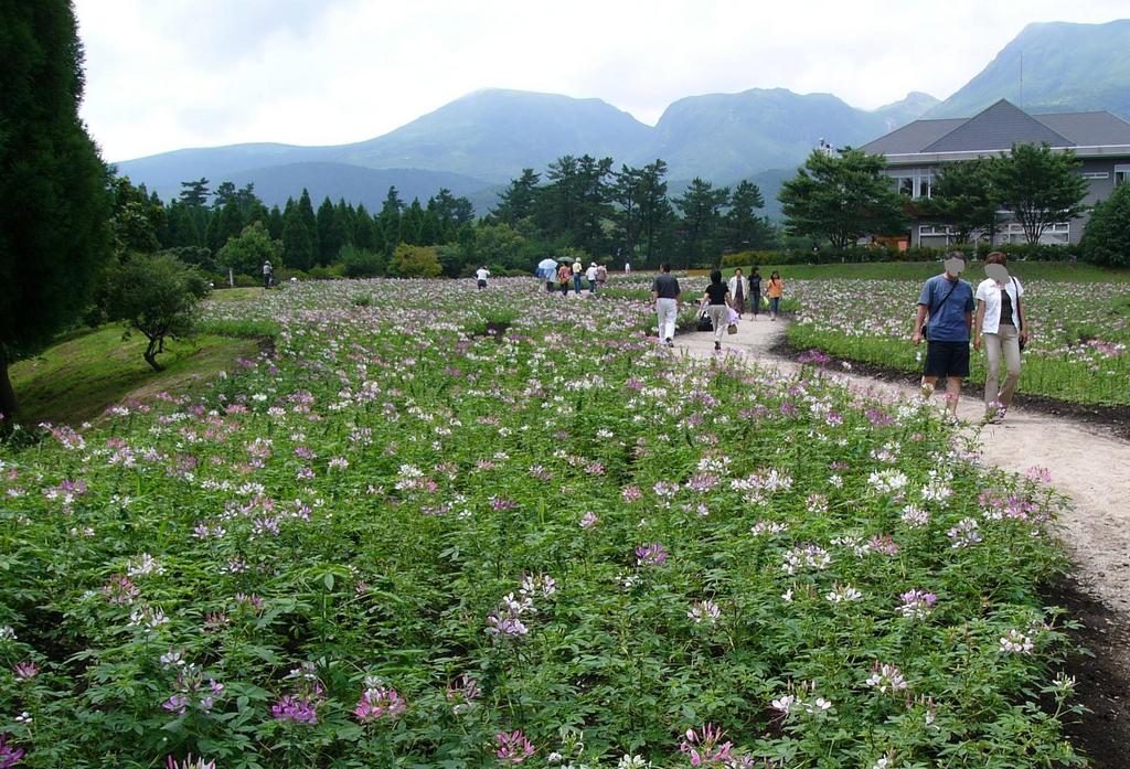 景色の好い所に、広いクレオメばたけ。素晴らしくのびのびしますね^^