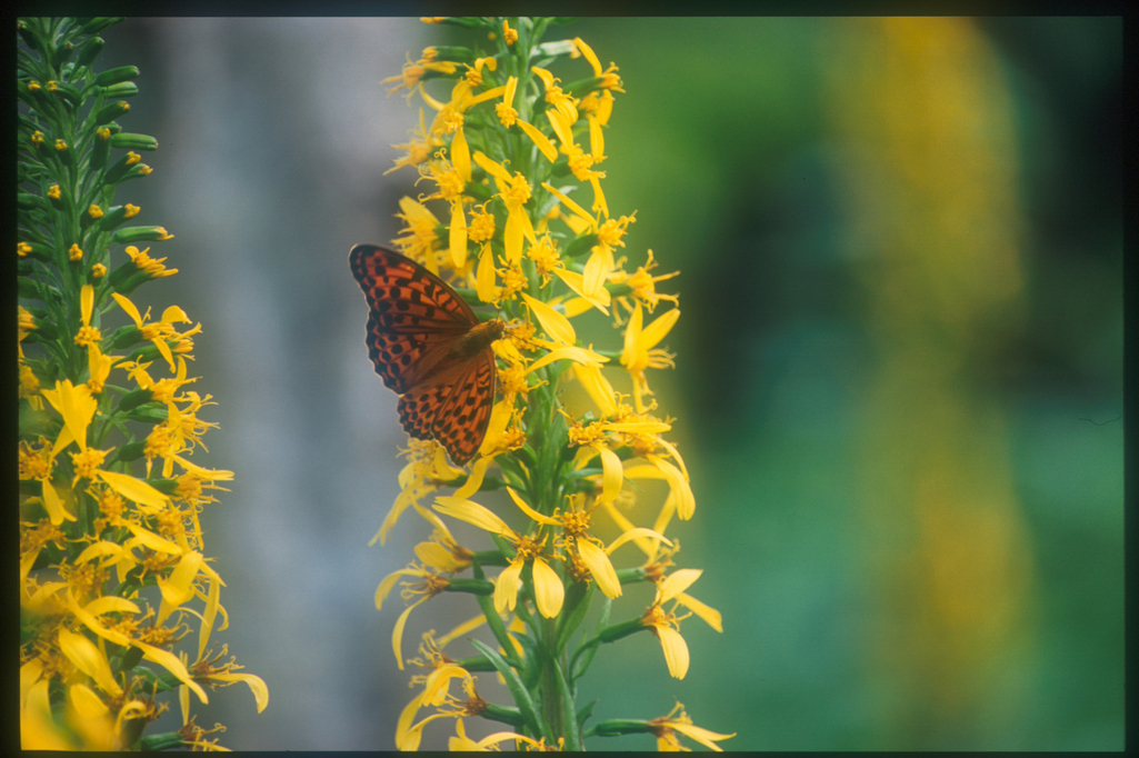 フキの仲間のような葉っぱですが、きれいなお花が咲くのですね。この蝶の色ととってもコラボしています。