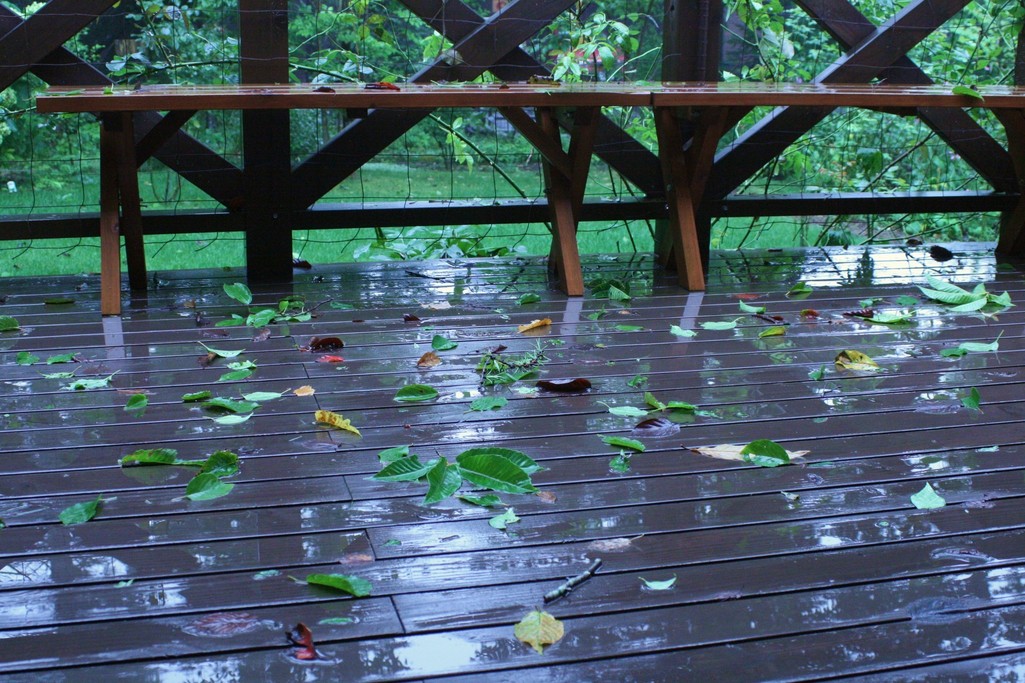 雨にぬれたデッキをじーっと見つめてると心が和らぐような気持ちになります。(^_^;)私のストレス解消方の一つです。