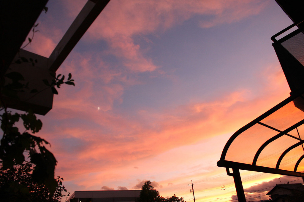 いいアングルですね。今日一日の締めくくりの空。今日もがんばったよ~って感じでしょうか(^_^;)