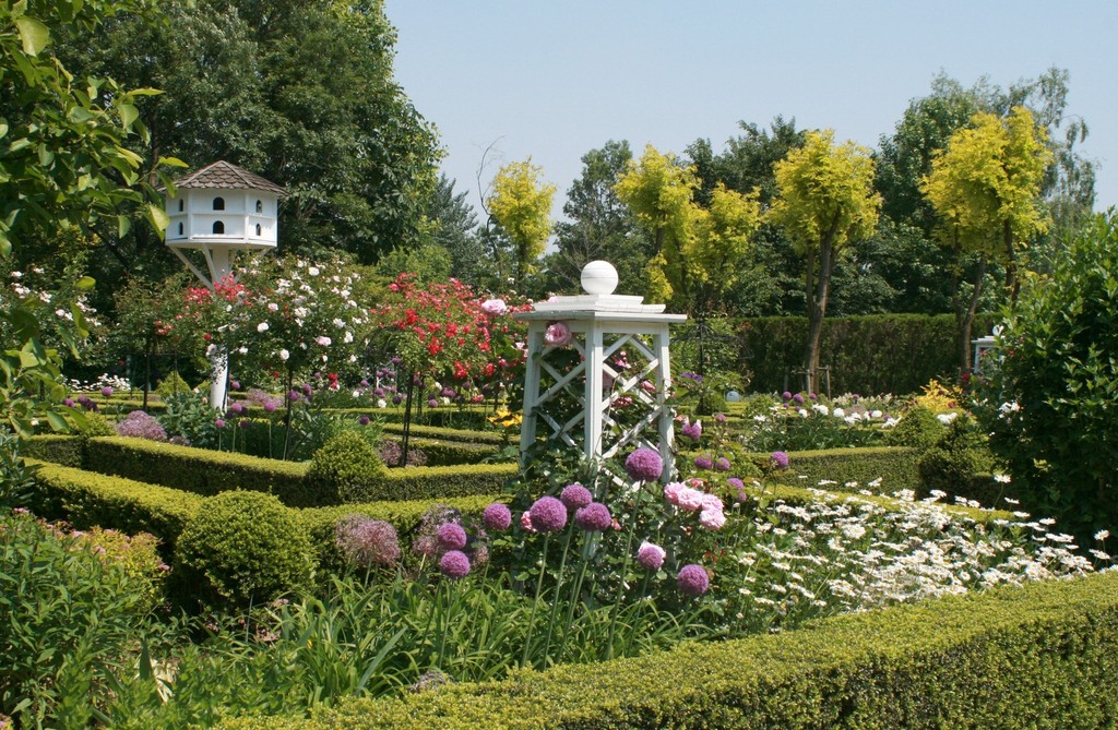 整形式も美しいですネ! ナチュラルな感じもいいですが、ツゲの囲いにスタンダード・ローズもまた別の美しさがあって好きです(*^^*)