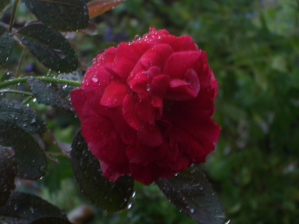 台風の中、薔薇もjyoujyaさんも頑張っておられたのですね。お風邪をひかれたりしませんでしたか?雨風に耐える赤い薔薇、とてもよく撮れていますね。